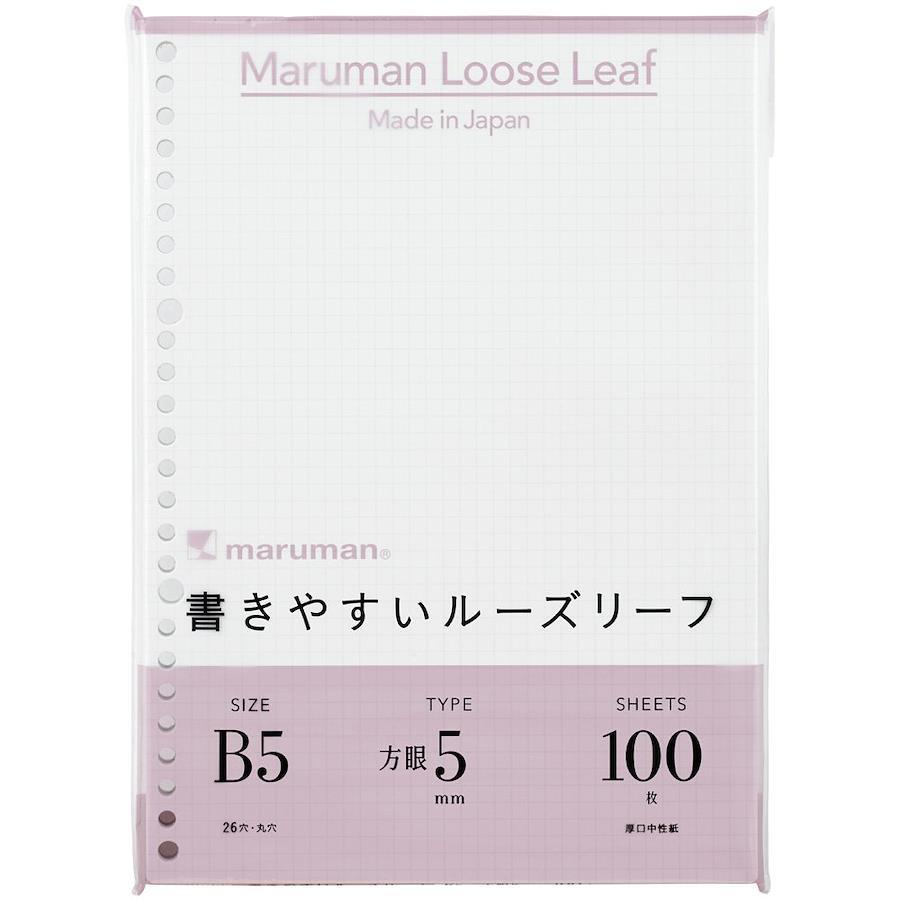 マルマン ルーズリーフ 書きやすいルーズリーフ5mm方眼罫 B5 L1207H 5冊組み