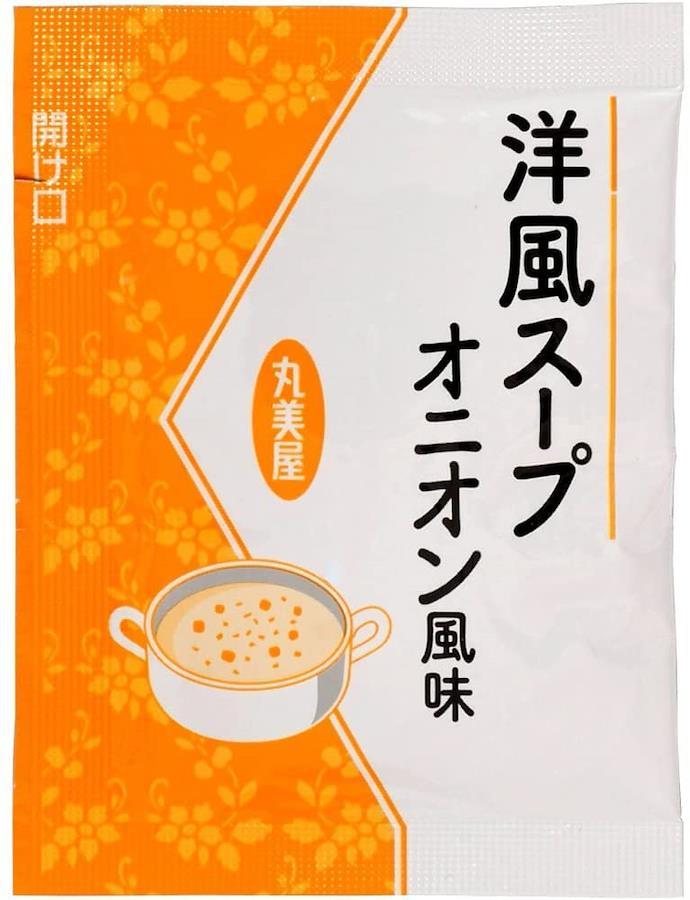 丸美屋 洋風スープ オニオン風味 原材料:食塩、乳糖、大豆加工品、砂糖、エキス(鰹、酵母、オニオン、ビーフ)、海藻カルシウム、醤油、澱粉、香味油、香辛料、うきみ・具(パセリ、豚肉)、調味料(アミノ酸等)、カラメル色素、セルロース、グリセリン、膨張剤、酸化防止剤(ローズマリー抽出物、ビタミンE)、香料、(原材料の一部に小麦、卵、鶏肉を含む)