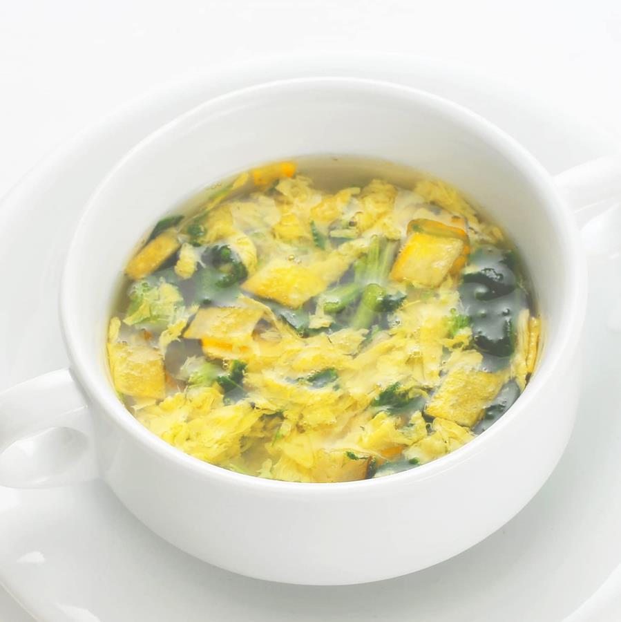 ・ふわふわたまごと緑黄色野菜入り。ほっと温まるおいしさで、和食にも洋食にもよく合います。