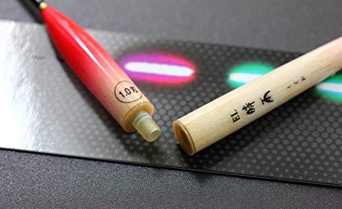 高感度、高輝度!電気ウキ新登場!! 明るい5点発光のトップは見やすく、感度もバツグンです。 足部は直径約2mm、真鍮製のカン付。 ボディー中央は、美しい木の素材を活かしたクリア塗装です。 ボディー中央の接合部分は新たに樹脂製のパーツを使用。 海水による腐食を防ぎ、長く使っていただけます。 また、水の侵入を防ぐダブルリシコンリング付き! 金属に比べて柔らかい樹脂は、締めこむことによって しっかりと密着し、防水効果を高めます。 長さ 0.5匁:約345mm 0.8匁:約358mm 1.0匁:約370mm 1.5匁:約380mm 2.0匁:約400mm (※足先からトップまで) ■発売年:2017年