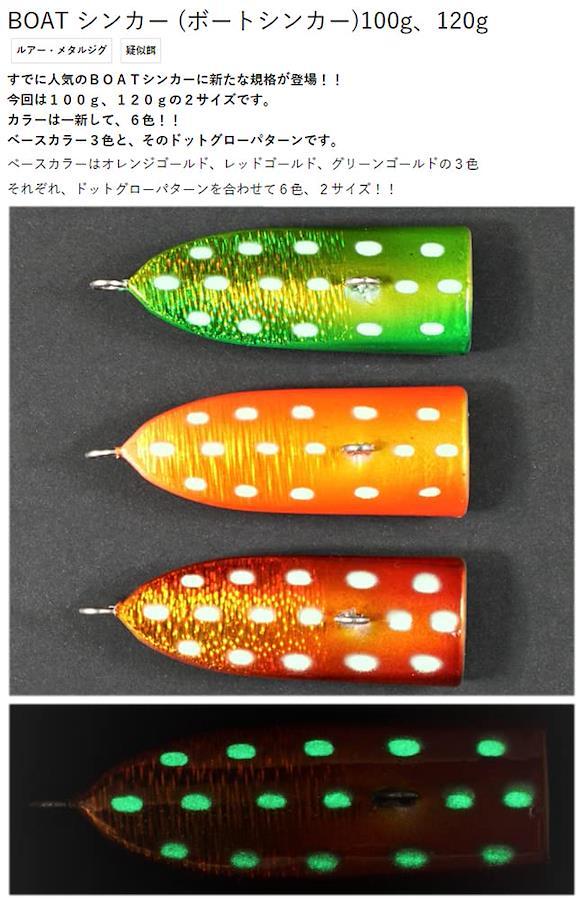 すでに人気のBOATシンカーに新たな規格が登場!!今回は100g、120gの2サイズです。船からの根魚釣りに最適です!