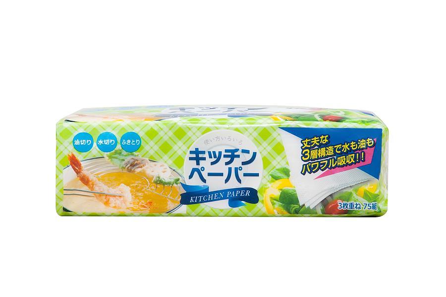 1パックあたり75組(合計225枚)の家庭用キッチンペーパーです。