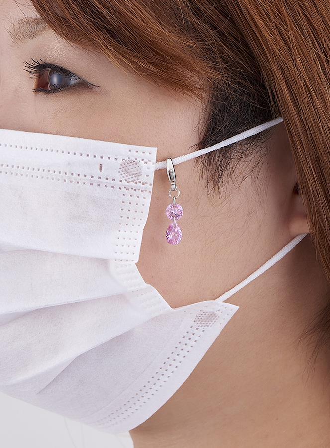 ★毎日楽しいマスクライフに!その日の気分で付けて下さい。*光にあたるとオーロラの煌きが美しいしずく型のクリスタルガラスが顔を明るく引き立てます。*キュービックジルコニアの透明感が美しいローズカラーがフェミニンなチャームです。*清楚で可愛く揺れる貝パールチャーム。*根付紐×1本サービス付き。マスクに付けないときは可愛い根付としも楽しんでください。