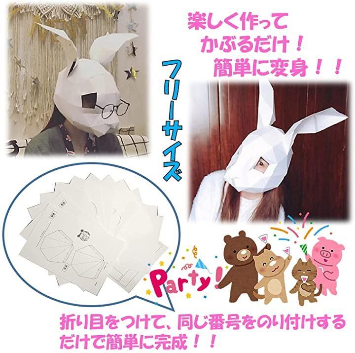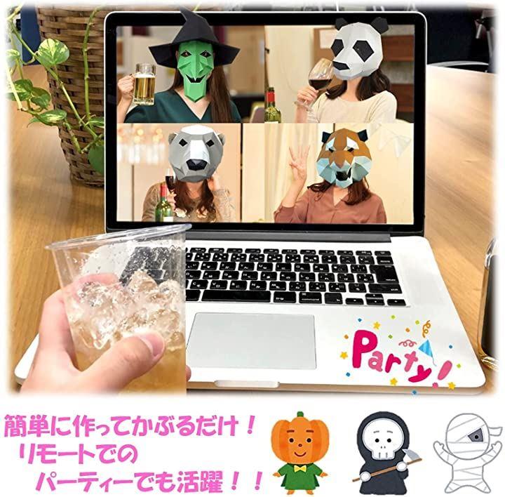 ・お面 仮面 動物 アニマル ペーパークラフト の。コスプレ仮装 にどうぞ*インスタ 映え リモート 飲み会 にも使えます。