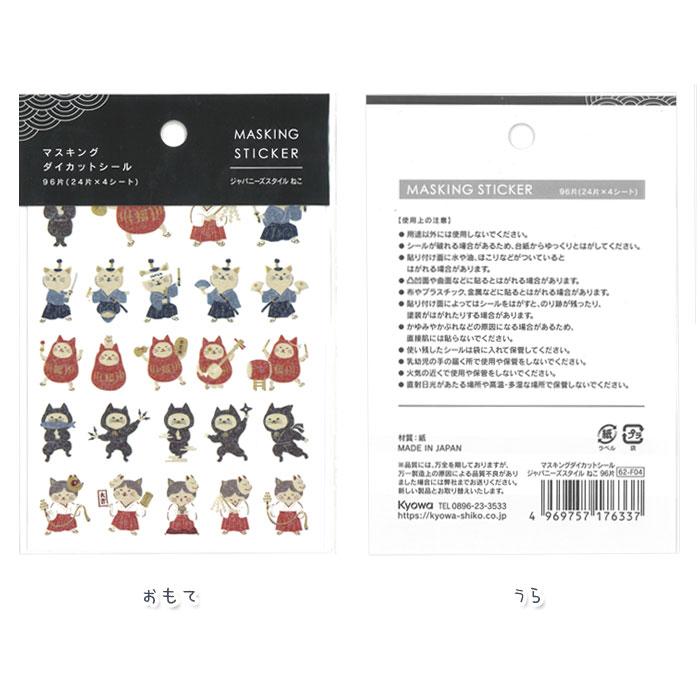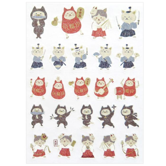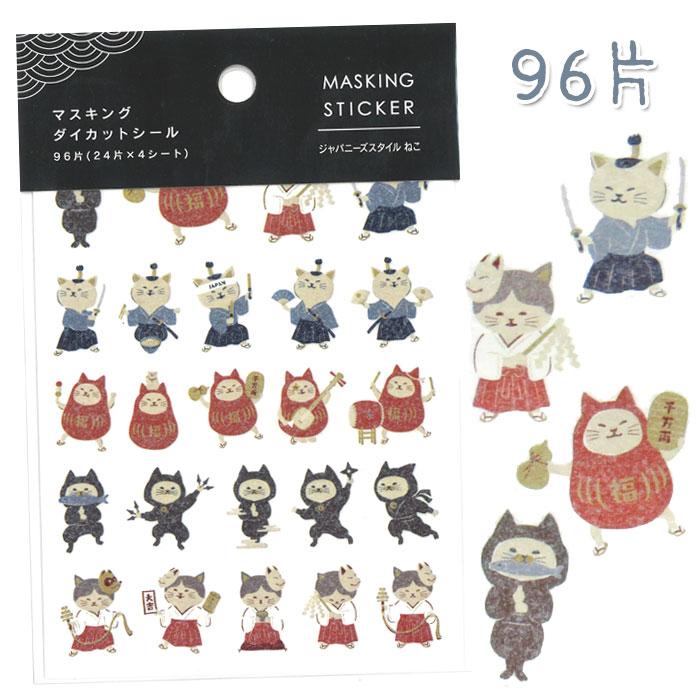 Masking die-cut stickers, Japanese style cat, 96 pieces