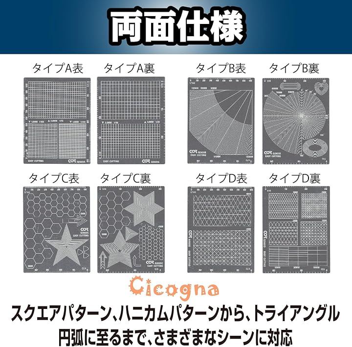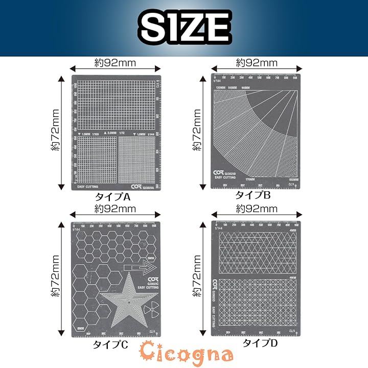 難しいマスキングテープのカッティングをストレスフリーに. 4種類のマスキングテープカットガイドのセットです。