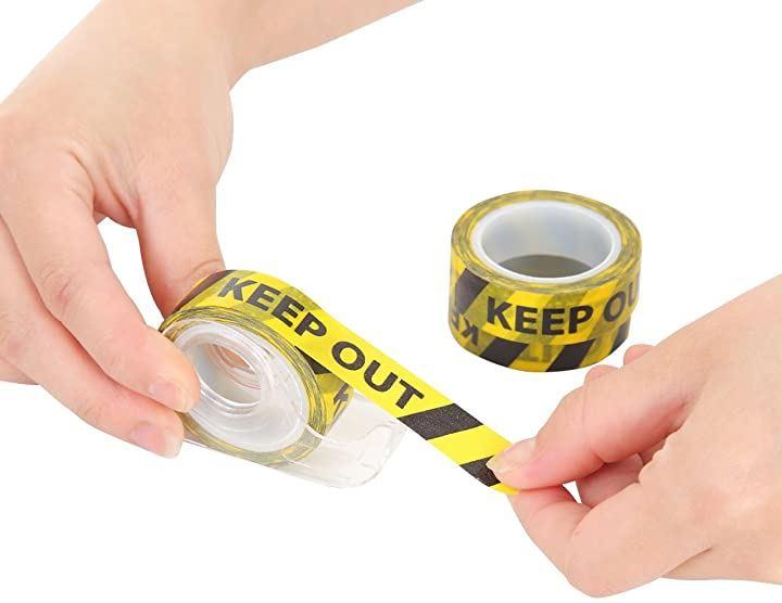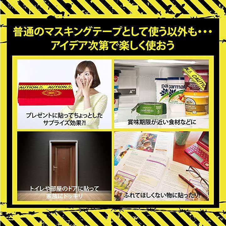 ・「あらゆるものに警告を」 ボールペンやノート、PCやプリンターをかっこよくアレンジするために使う他、部屋の扉や壁などに貼ってもOK。 また、セロハンテープのように付箋をとめたり、袋に封をするなど、日常的な用途にも対応しています。