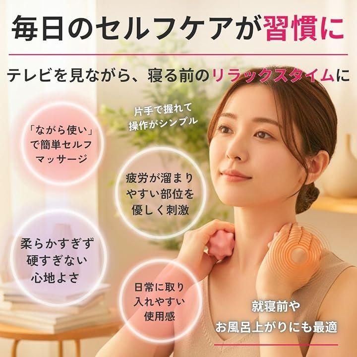 程よい硬さのシリコン素材が深部に届く心地よい刺激を生み、コリや疲れを軽減。