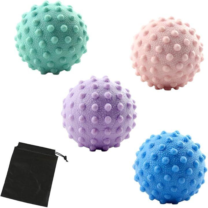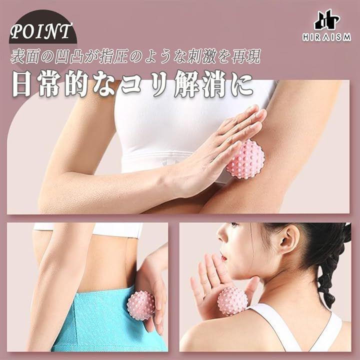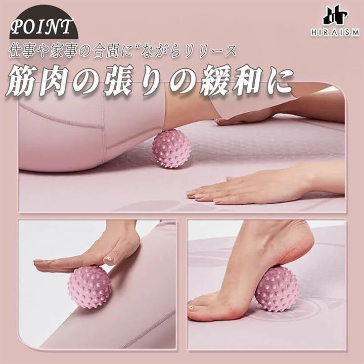 「使い分け自在の4色x凸凹構造でピンポイント刺激」北欧風デザインの4色(緑・ピンク・紫・青)マッサージボールをセットに。