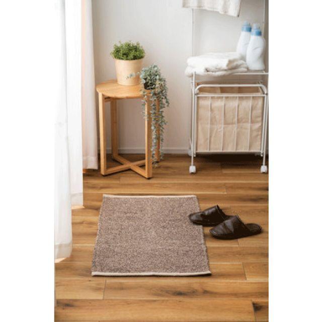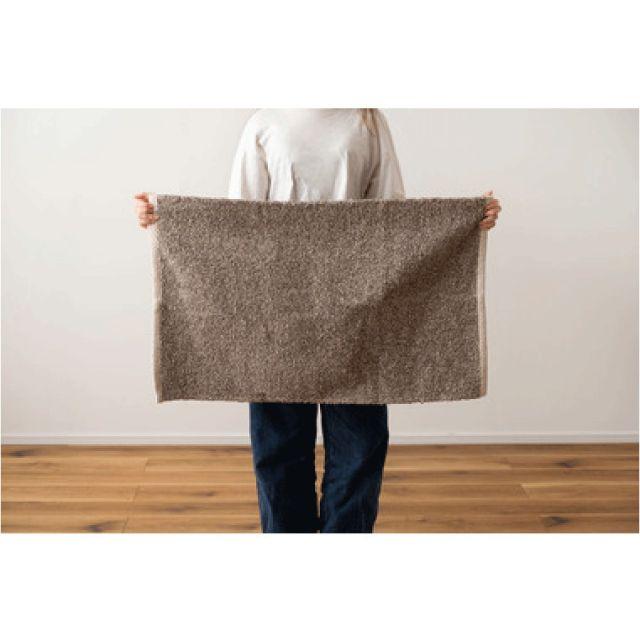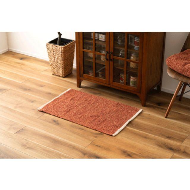 混色のブークレ生地が絶妙なニュアンスを表現。トレンドのブークレ生地を使用したシリーズ。混色の物を使う事で、絶妙なニュアンスカラーを表現しています。ベッド横や玄関先で使いやすいサイズ感のマットです。ブラウングリーングレーオレンジ