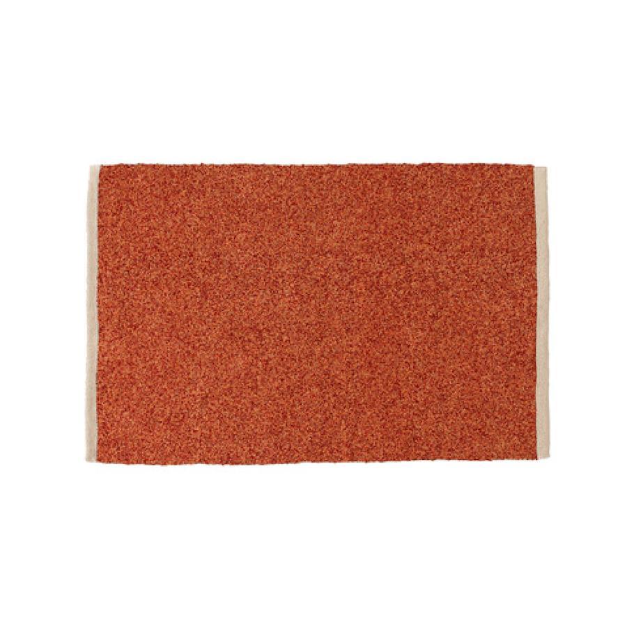 混色のブークレ生地が絶妙なニュアンスを表現。トレンドのブークレ生地を使用したシリーズ。混色の物を使う事で、絶妙なニュアンスカラーを表現しています。ベッド横や玄関先で使いやすいサイズ感のマットです。ブラウングリーングレーオレンジ