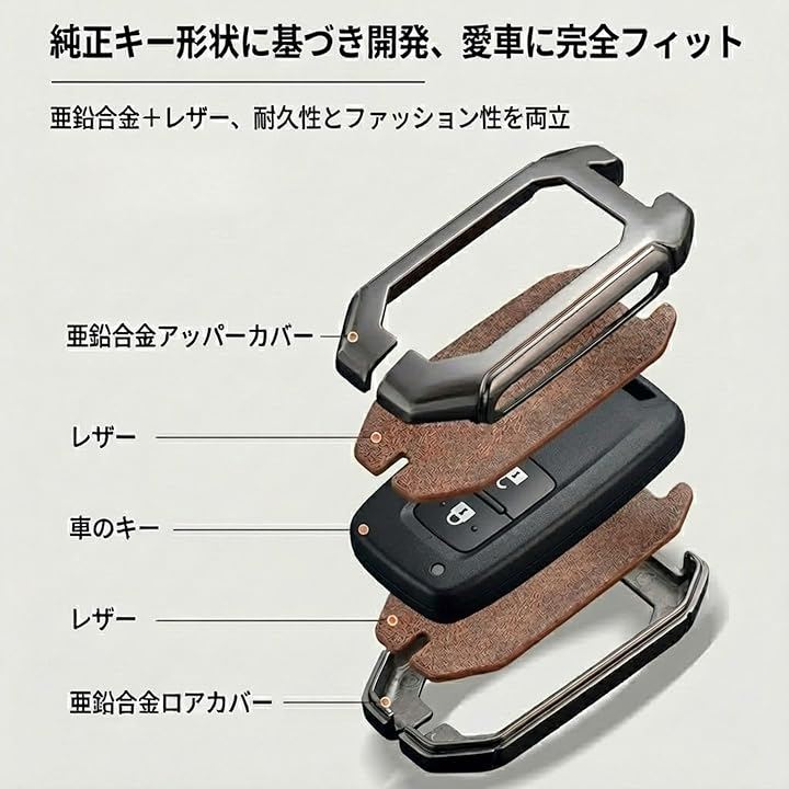 「高級レザー調素材」耐久性に優れ、傷や汚れからキーをしっかり保護
