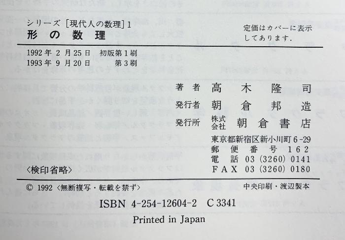 Mathematics of Shape (Series: Mathematics of Modern People 1) Asakura Shoten Takagi Takashi