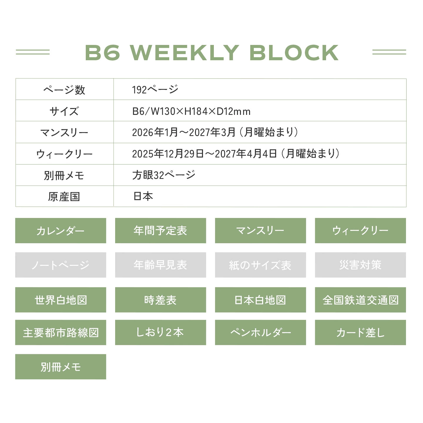 【2026年1月始まり ウィークリー・ブロック手帳】小さなワンポイントが大人可愛いウィークリー手帳。ビジネスなどシーンを問わず使えるシンプルなデザインです。