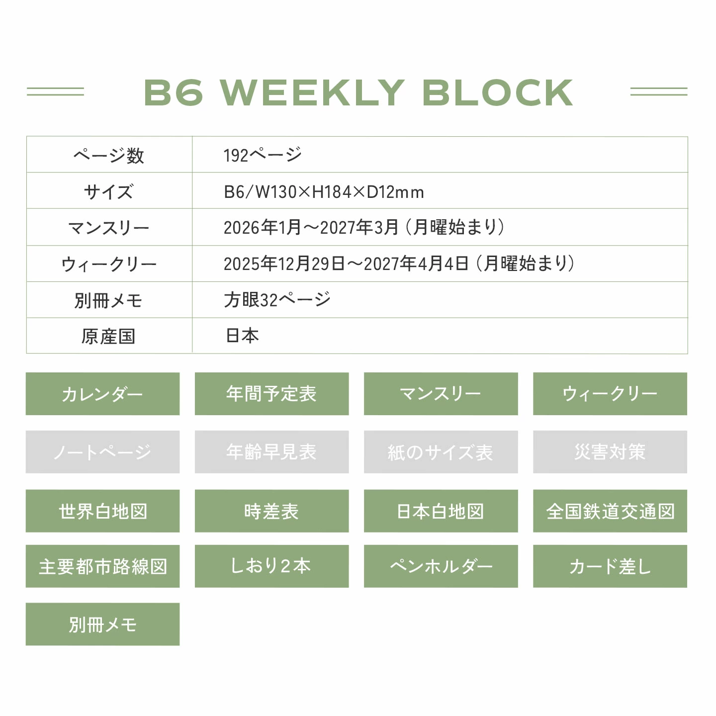 ■関連キーワード10代 20代 30代 40代 50代 60代 70代 80代 中学校 高校 大学 中学生 高校生 大学生 先生 学生 学校 通学 通勤 女性 女子 女の子 ガールズ レディース girls 誕生日 プレゼント プチ ミニ お祝い お返し 粗品 景品 送別会 イベント 母の日 おしゃれ オシャレ お洒落 かわいい 可愛い カワイイ シンプル ダイアリー 手帳 2026 ウィークリー ブロック MATOKA マトカ 1月始まり B6 花 週間 4月始まり 月曜始まり エルコミューン ミモザ チューリップ スズラン 週間ブロック マンスリー 日記帳 月間ブロック 方眼 予定 見開き 1ヶ月 メモ リスト イラスト 記録 フルール FLEURS 令和8年 週間手帳 ブロック手帳 ビジネス 路線図 地図 大人可愛い フラワー 北欧 ワンポイント ベージュ グレー グリーン