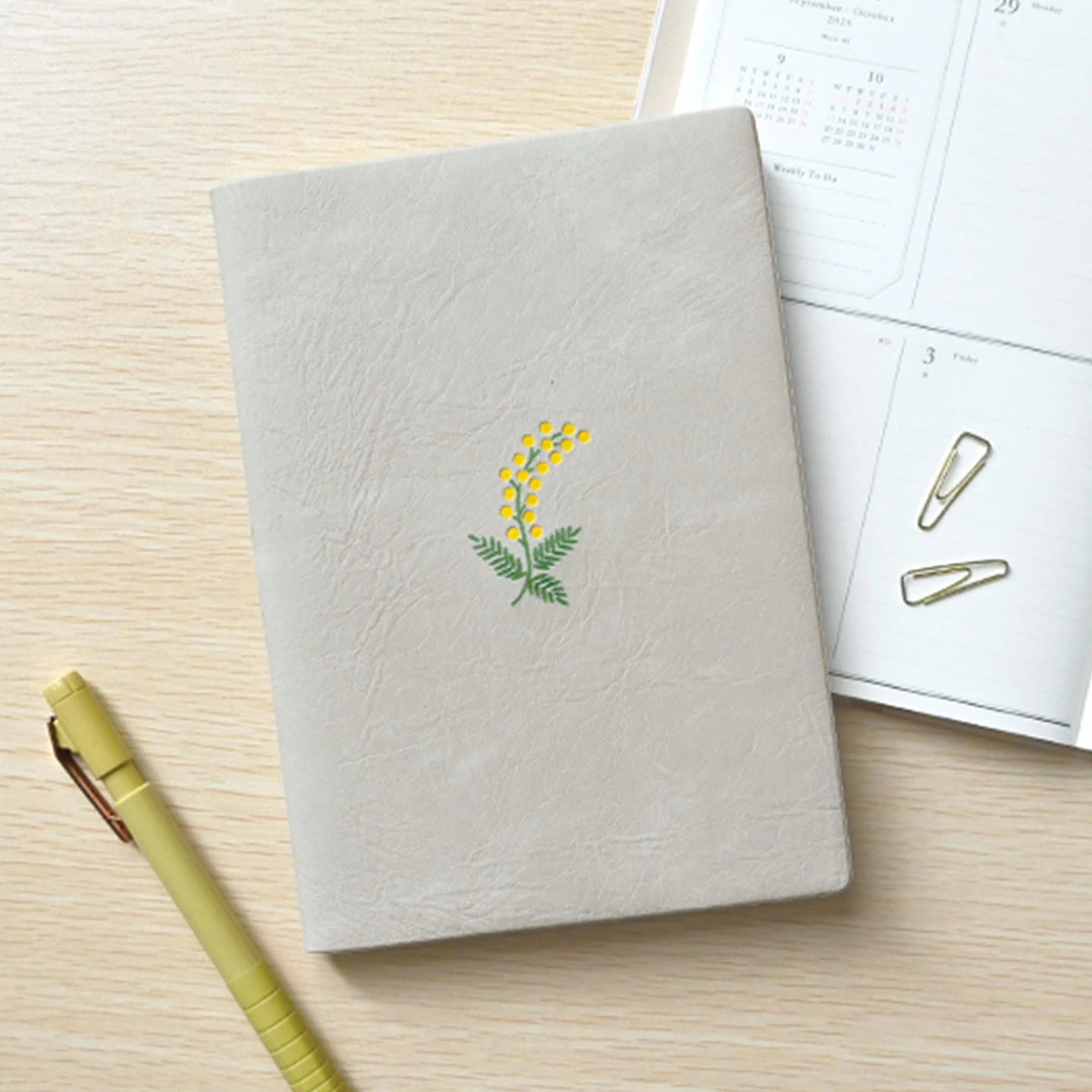 【2026年1月始まり ウィークリー・ブロック手帳 フルール】お花のワンポイントをあしらったウィークリー手帳。人気のミモザ、チューリップ、スズランがモチーフになっています。ビジネスなどシーンを問わず使えるシンプルで上品なデザインです。