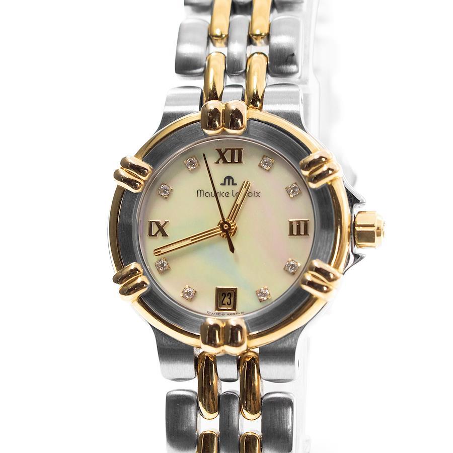 特徴:イエローシェル・コンビカラー・ダイヤモンド・小さめ・ロゴ・マーク・珍しい・おしゃれ・ブランド・クォーツ