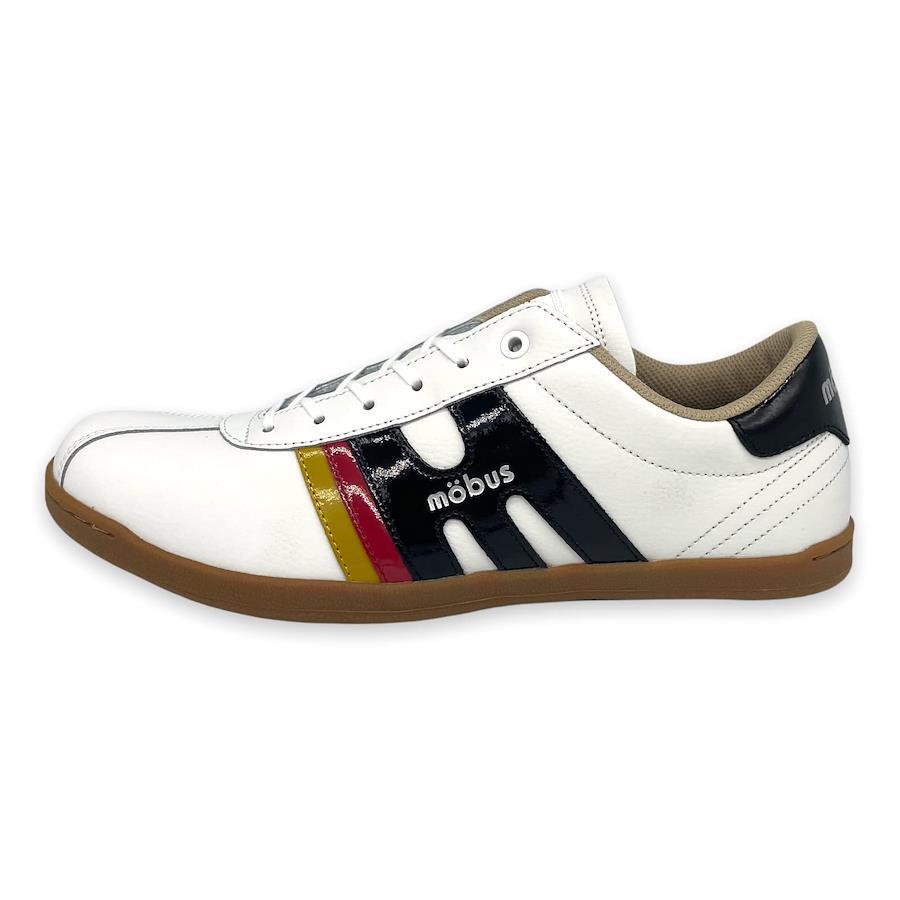 クロージャータイプ レースアップ mobus定番モデルロングセラーレザースニーカーつま先上がりサイドはエナメルレザー