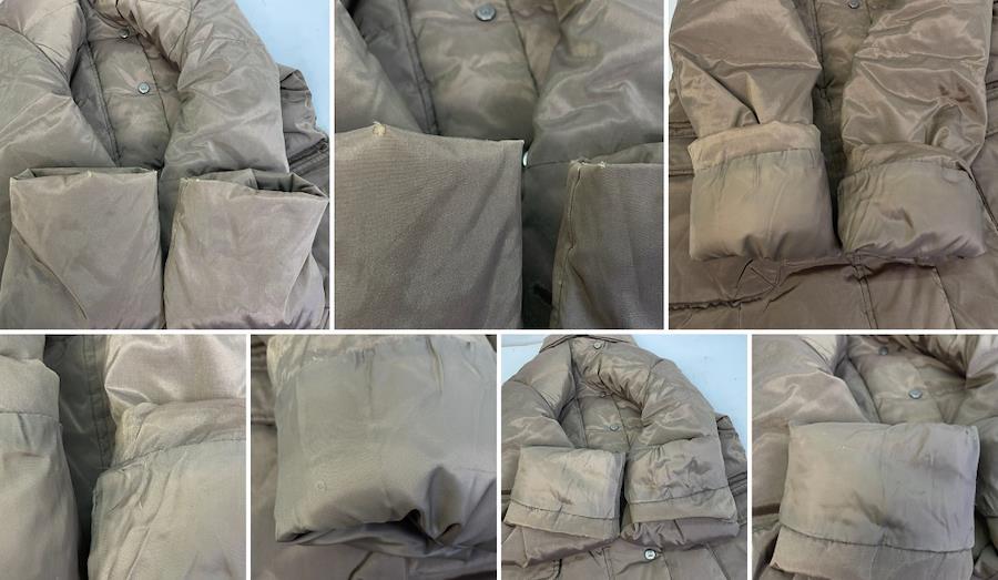 ・正面ファスナー下部破損あり(上げられますが上げづらさがあります)・脇下や腰のあたりキズ・袖口ほつれあり・貫通までいかないくらいの穴あき、破れ、汚れあり
