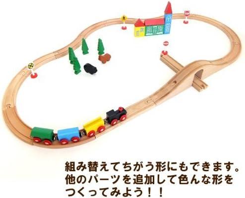 ■商品説明木のおもちゃ。木製のレールセットシリーズ37ピースです。木製レールに必要な基本パーツが揃った8の字セット!大人気です。 BRIO社、きかんしゃトーマス木製レールなどと互換性があります。木製ならではの“ゴトゴト”という音がするレール。組み立てという根本的な知育玩具としても活躍してくれます。 セット内容:カーブレール12本、ストレートレール2本、トンネル1個、 汽車4両、標識4個(プラスチック)、積み木(動物2匹・建物3個・木4個) サイズ:幅105cm×奥行45cm(8の字の状態) 素材:カバの木、プラスチック、スチール?もっと見る