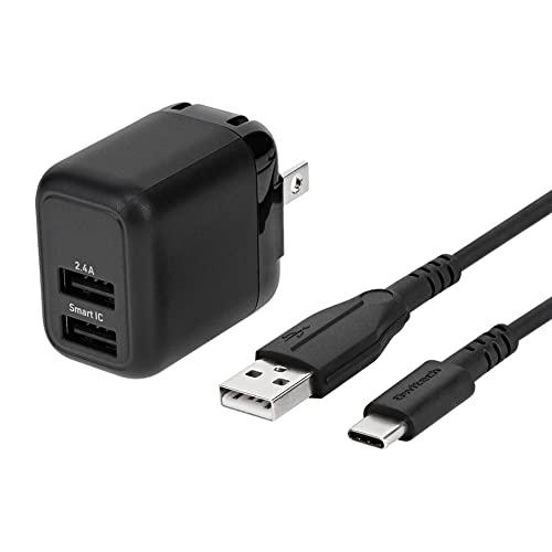 最大12W USB Type-A 2ポート AC充電器 + 超タフUSB Type-A to USB Type-Cケーブル セット ブラック OWL-AC12WBAC20-BK [Smart IC対応