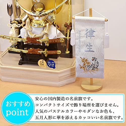 サイズ 横幅16奥行10高さ37cm 4/18までのご注文で5/5までの着です。 五月人形 名前旗 コンパクト 5月人形 兜飾り 鎧飾り 初節句 端午の節句 お祝いにa5jin-hata-2-kon 端午の節句お名前旗タペストリー。五月人形 5月人形 名前旗 男の子 紺 刺繍名入れ代込 台座付き コンパクト お祝い 兜飾り 鎧飾り 自動受注メール、又は弊社よりの受注メールにご返信ください。製作は最低2週間要します。(お節句が近くなると大変混み合います、お早めの御注文をオススメいたします) 名入れ・生年月日入れ等、対象商品をご注文の場合、アマゾントップページの「 アカウントサービス > 注文履歴 > 出品者へ連絡する 」よりメールにて、お名前・生年月日等、必要事項を弊社までご連絡ください。 受注生産品につき、ご注文後の変更・キャンセルは一切承れませんので、あらかじめご了承ください。手作り品のため、出来上がり寸法や、色や柄の出方など、一部細工の仕様変更がある場合がございます。ご了承ください。製造時期により、形状の仕様が変更になる場合がございます。