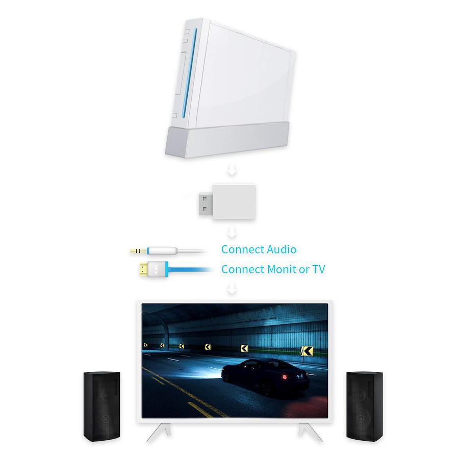Wiiの最大ネイティブ解像度は、使用するケーブルに応じてアナログ出力480iまたは480pです。つまり、アダプターがゲームを魔法のように720pまたは1080pに変換することはありません。