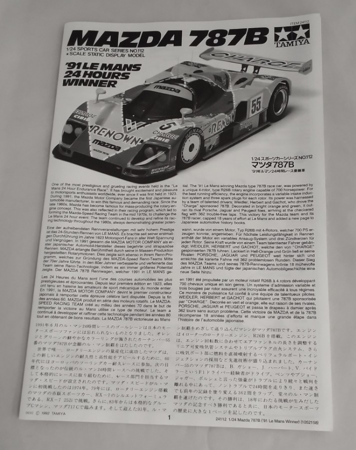 マツダ787B 1/24 MAZDA 787B TAMIYA/タミヤ 車・トラック TAMIYA/タミヤ 1/24 MAZDA 787B マツダ787B