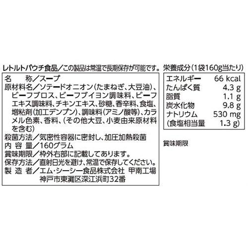 原材料:ソテードオニオン(たまねぎ、大豆油)、ビーフブロス、ビーフブイヨン調味料、ビーフエキス調味料、チキンエキス、砂糖、香辛料、食塩、増粘剤(加工デンプン)、調味料(アミノ酸等)、カラメル色素、香料、(その他大豆、小麦由来原材料を含む)商品サイズ(高さx奥行x幅):130mm×90mm×250mm【重要】メーカーによる商品リニューアルに伴いパッケージ(内容量も含む)変更が行われた場合、新パッケージでお届け致します事ご了承願います。