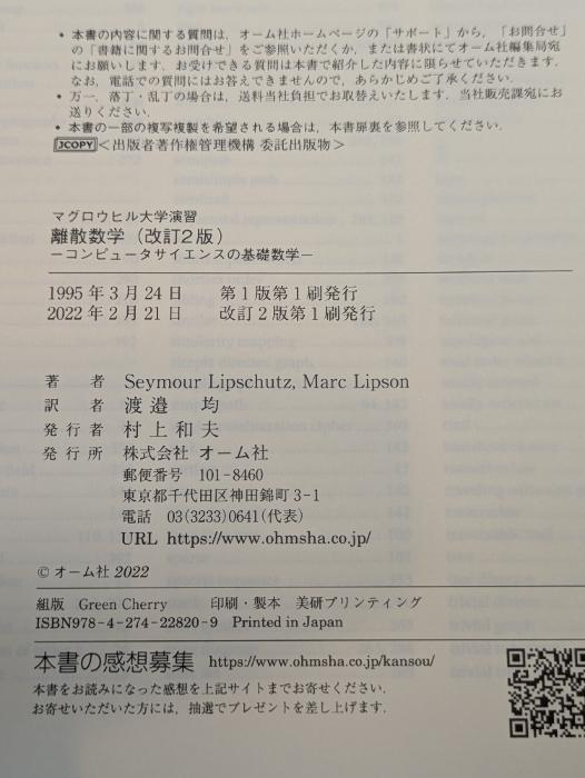 a01-250926001002015-000マグロウヒル大学演習 離散数学(改訂2版): コンピュータサイエンスの基礎数学 オーム社 Seymour Lipschutz