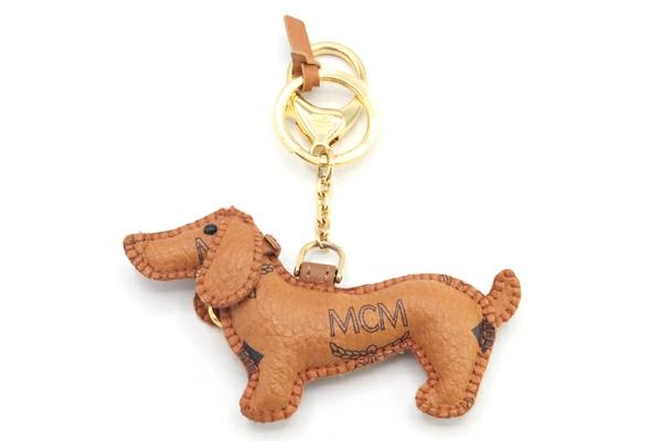 MCM Brown Leather Bag Charm, Pre-Owned, Keychain, Key Ring, Bag Accessory, Dog, Dachshund