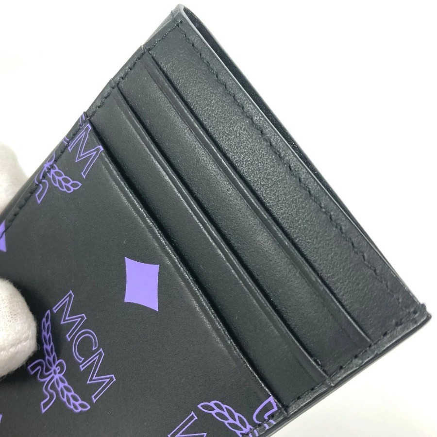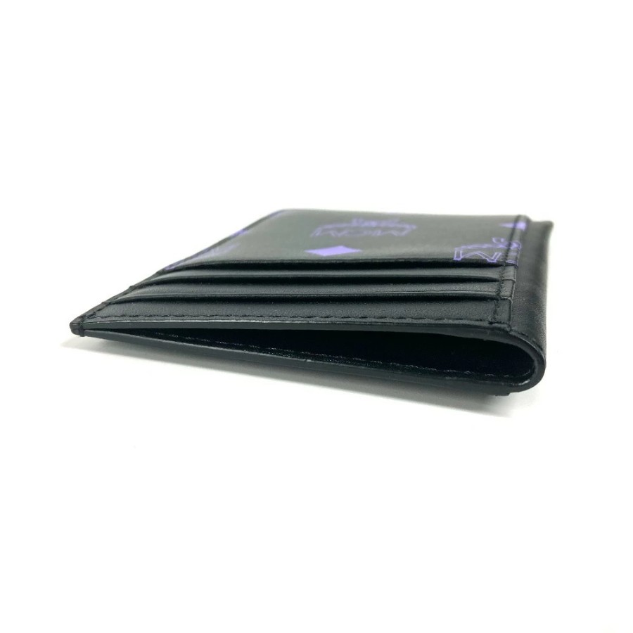 MCM Logo Business Card Holder/Pass Case, Bi-color Leather Card Case, Unisex, Black [Used]