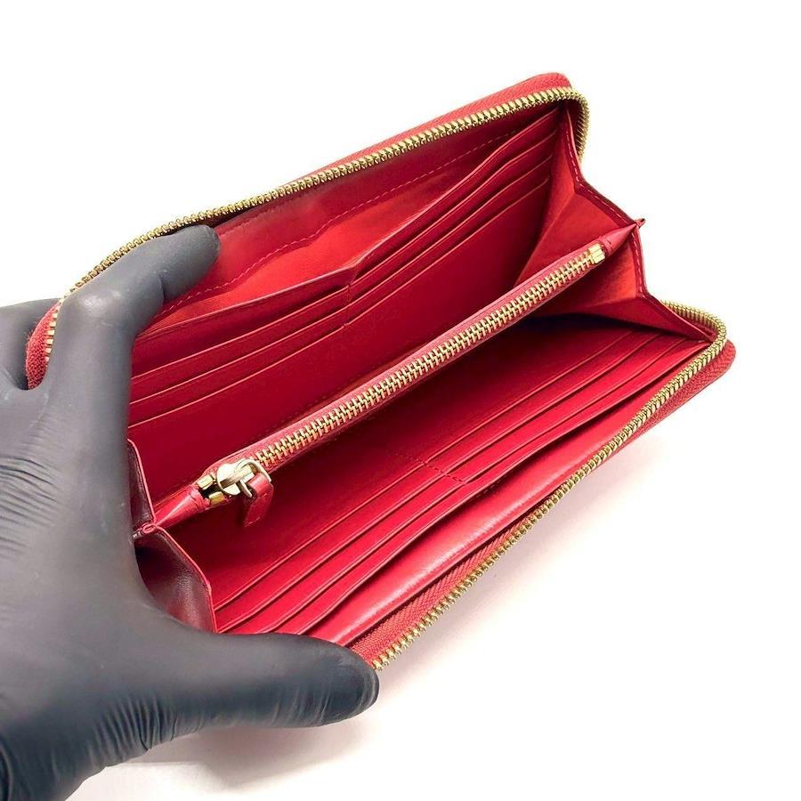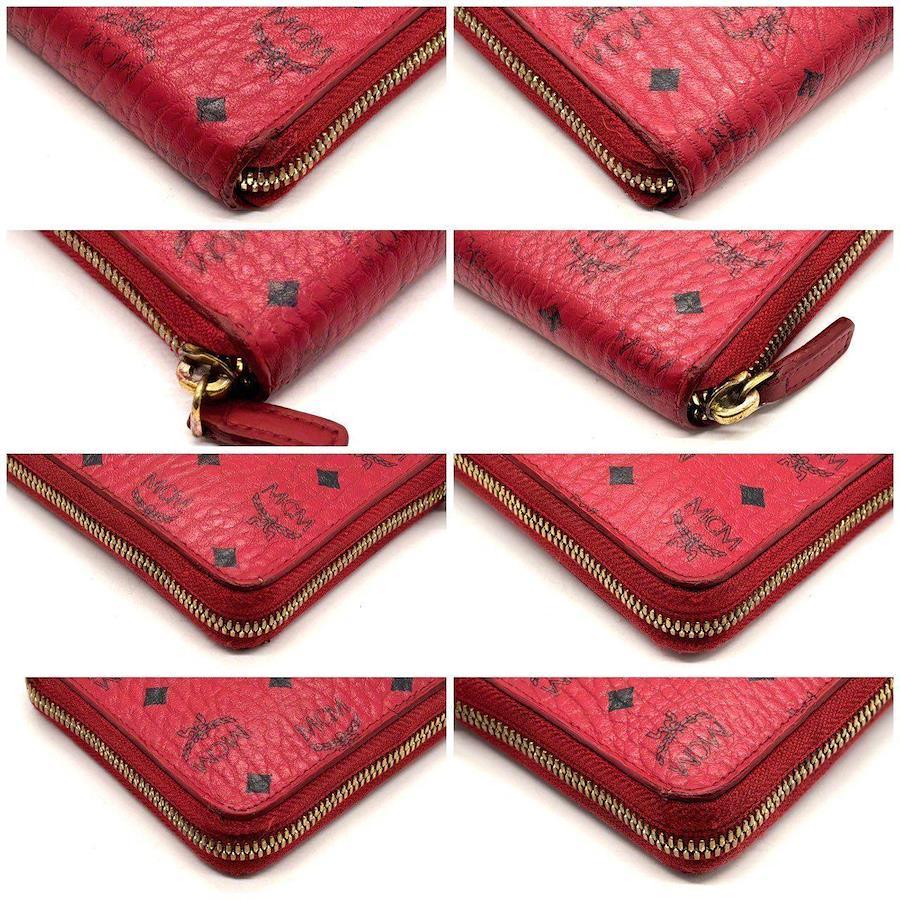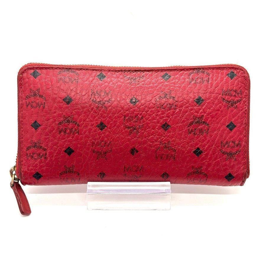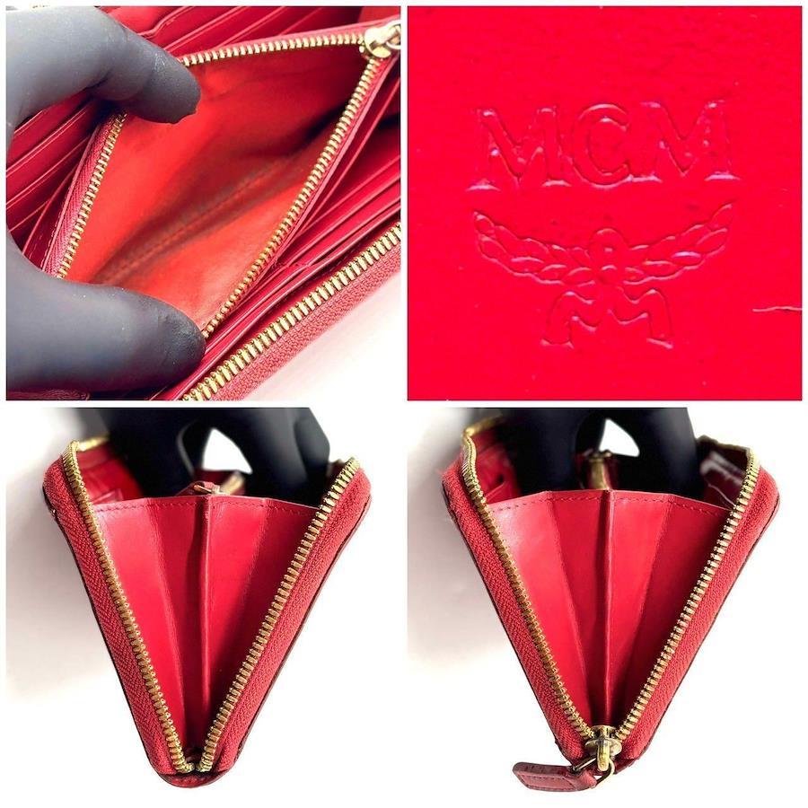 MCM Women's Long Wallet with Zip-Around Design, Red Leather, Visetos Pattern, All-Over Logo Print, 12 Cards