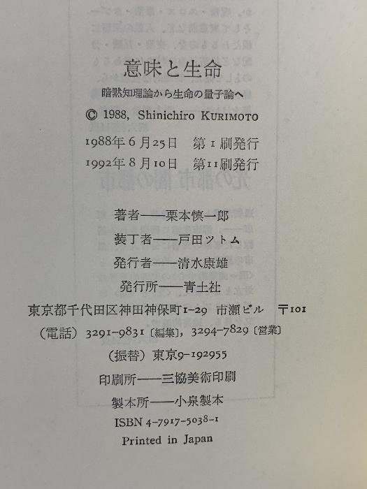 Meaning and Life: From Tacit Knowledge Theory to Quantum Theory of Life, Seidosha, Shinichiro Kurimoto