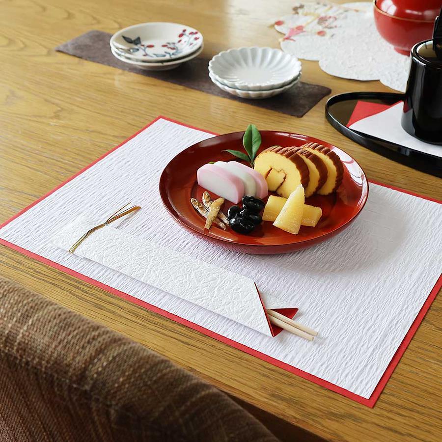 箸包みの内側に紅をさし、さりげなく華やかな印象です。