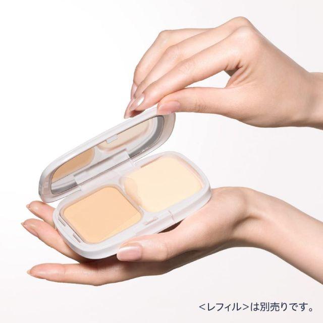指がかりがよく、開けやすいフォルム。ワンタッチでレフィルのセットや取り外しも簡単。メディアリュクスのパウダーファンデーション専用のケース。
