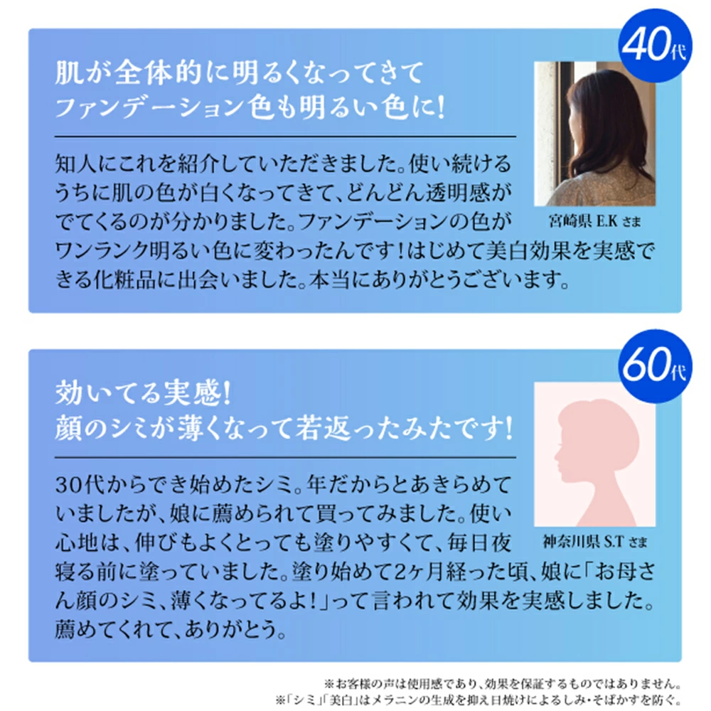■シミ、肝斑、ソバカスに■少量でも滑らかに伸びる軽い使用感。■無香料・無着色・パラベンフリー