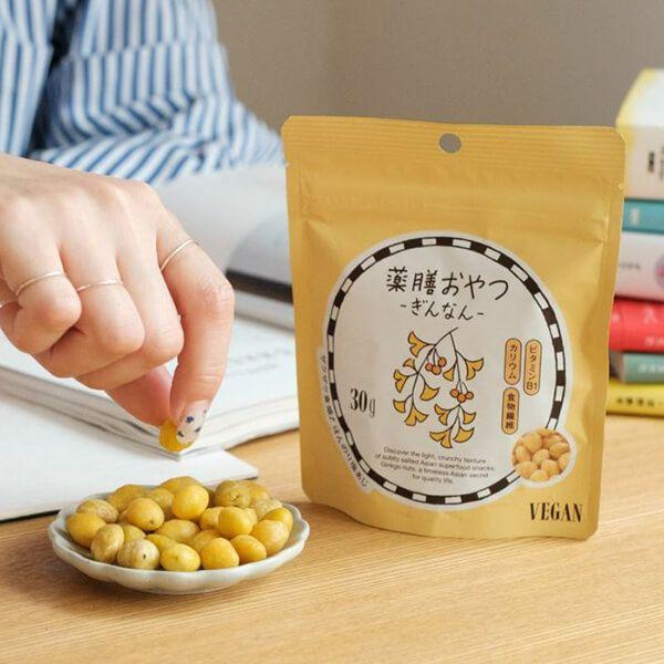 薬膳おやつぎんなんはザクザク食感の食物繊維も摂れちゃう薬膳ヘルシースナックに秋の味覚が仲間入り。うす塩味なので、おつまみにも!