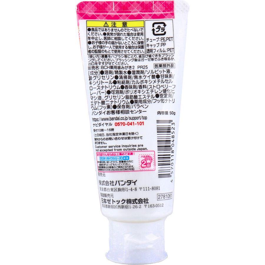 薬用成分フッ素配合●キシリトール(甘味剤)配合●着色剤・発泡剤フリー。●いちご味。