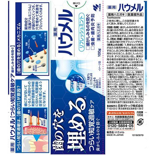 【効能・効果】・歯がしみるのを防ぐ。・歯肉(齦)炎の予防。・むし歯の発生及び進行の予防。・歯を白くする。・口臭の防止。・口中を浄化する。・口中を爽快にする。