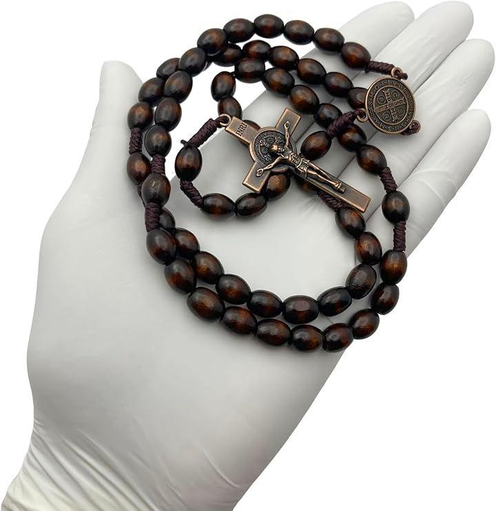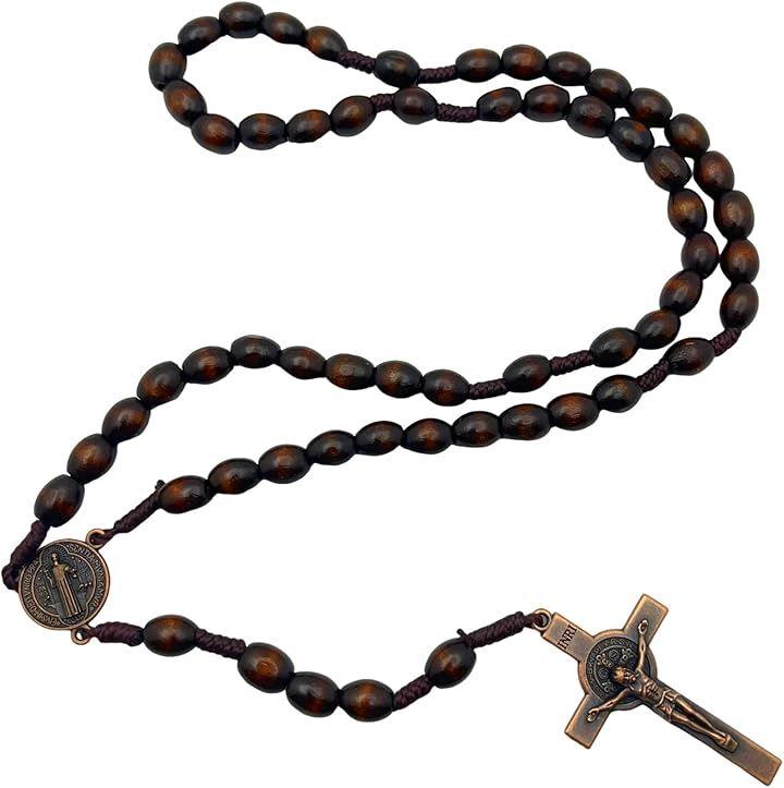 コーヒーブラウン色の木製ビーズを使ったハンドメイドの美しいロザリオです。