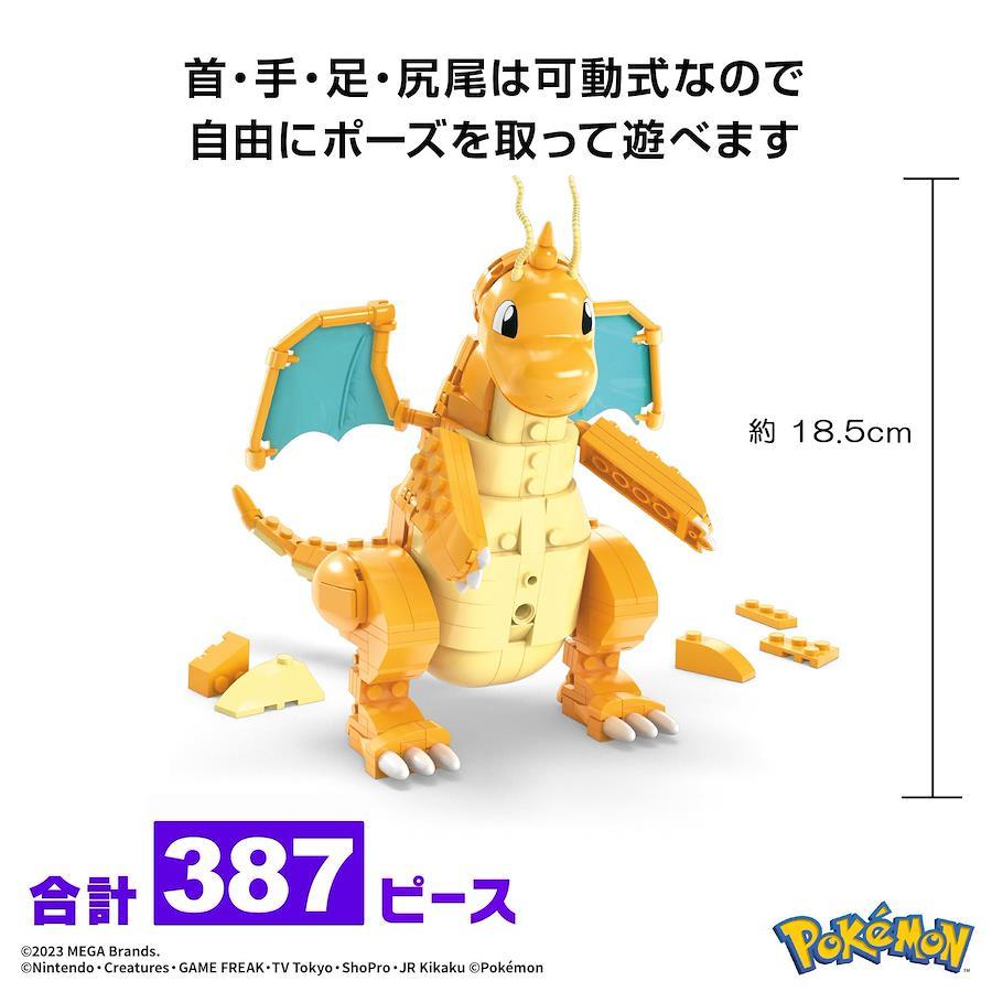 【内容】カイリューと一緒に空の冒険にでかけよう!合計387ピースのブロックで精巧なカイリューを自分で組み立てられるブロックセット、歯車ブロック付きシリーズ。歯車ブロックに連結したハンドルを回すと、カイリューの翼がパタパタ動きます。首・手・足・尻尾も可動式なので、好きなポーズをとって遊ぼう。組み立てた後も楽しめる、おどろきのギミックで、想像力をさらにかき立てます。他のメガ ポケモン アドベンチャーワールド 歯車ブロック付きシリーズ と組み合わせて遊ぶことも可能。ギミックが連動して、よりダイナミックな動きを楽しめます。2023 MEGA Brands.Nintendo・CR・GF・TX・SP・JK Pokemon