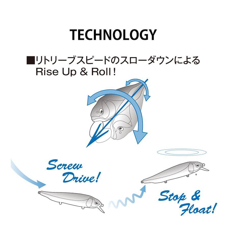 ラテスは、水面直下を激しくローリングしながら、アンダーレンジのターゲットにナチュラルなインパクトを放つ、リアルスティック・ローラーベイト。その激しいローリングが生み出す明滅は、まるで移動回遊中のベイトの群れのよう。風にさらされ水面が撹乱している状況では、なお一層の明滅インパクトを放ち、下層のターゲットにアピール。回遊中のモンスターを、「浮かせて獲る」エクストリーム・サーフェスミノーです。使い方は簡単。スロー~ミディアムスピードでリトリーブするだけ。また、時折リトリーブを減速し、水面へと浮かせながら泳がせる、「ライズアップ&ロール」や、ラテスを潜らせたのち、浮上を抑えたギリギリのスロースピードで一定のサーフェスレンジをキープ&ロールさせる「ホバリング」では、リアクションバイトを誘発。ハイギア搭載リールによるスローリトリーブは、このオペレーションが一層イージーになります。なお、トップウォーターゲームでは、トゥイッチによるスラッピングが効果的。ヒラを打ちながらの瞬時のスライドアクションで、リアルなパニックベイトを演出します。ローラーベイト・ラテスは、上層を意識している状態のフィッシュイーター