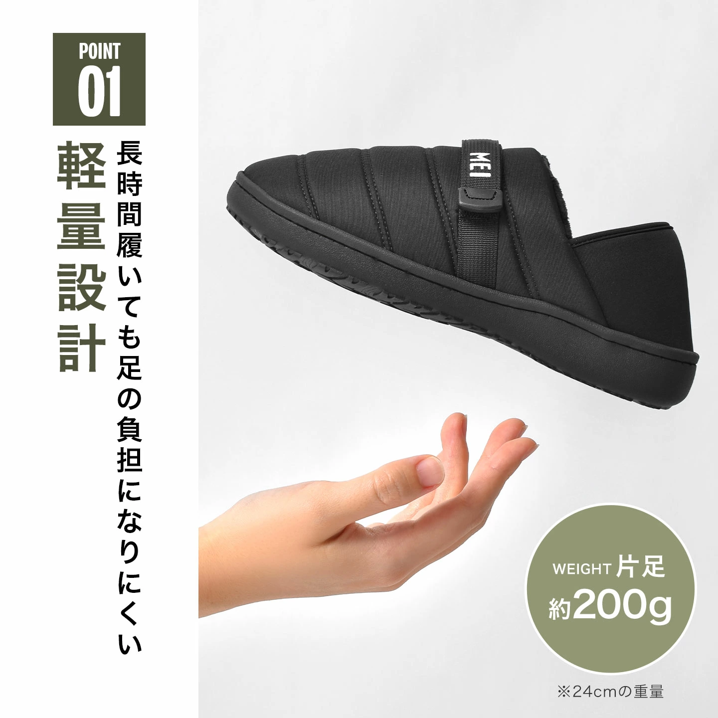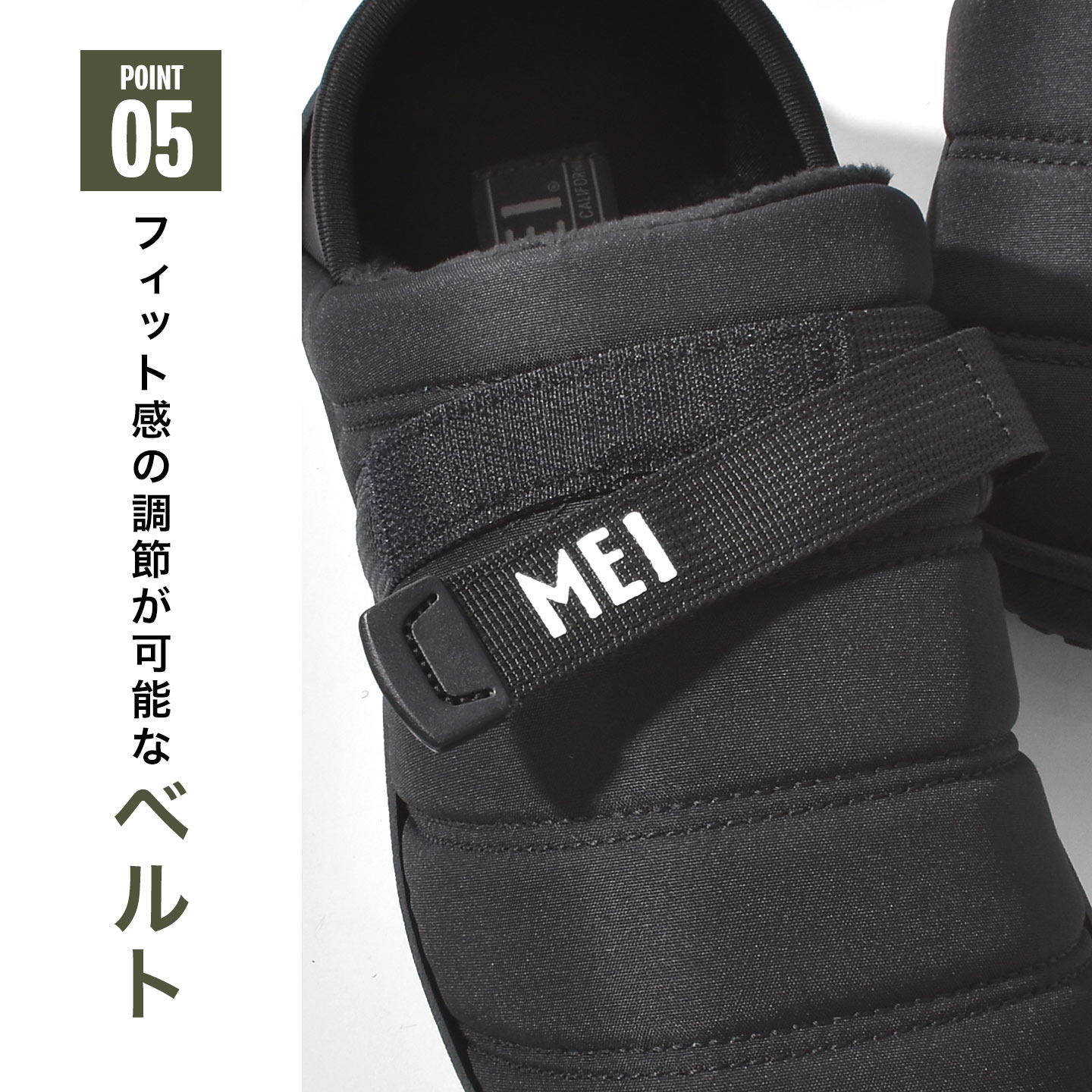 【ベルトモックシューズ】アメリカ発祥のアウトドアブランドMEI(エムイーアイ)から、もこもこで暖かいベルトモックシューズが登場!丸みがあり、ボリューム感があるシルエットがとても魅力的です。フィット感の調節が可能な面ファスナーベルト付き。アウトソールにはTPR素材を利用しており、滑りにくく、屈曲性に優れているので歩きやすい◎さらに内側には、もこもこのファーにふかふかのクッションが搭載されており、履き心地は抜群です。