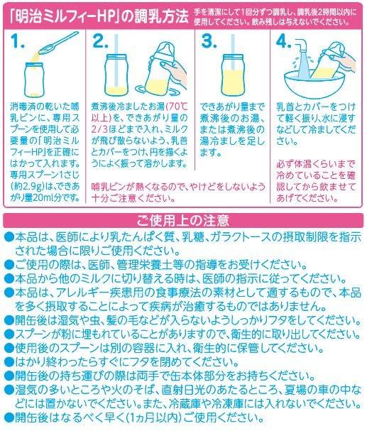 良質な牛乳乳清たんぱく質を酵素分解するとともに、乳糖を含まない、風味と溶けのよさを実現したミルクアレルギーの赤ちゃんのための粉ミルク、明治ミルフィーHP。 乳児の成長 育成に必要な脂質 炭水化物 ビタミン ミネラルを消化吸収しやすい形でバランスよく配合しています。 HPとは分解されたたんぱく質 Hydrolyzed Protein ハイドロライズドプロテイン の意味です。
