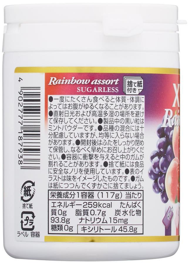 原材料:マルチトール、植物油脂、ミントパウダー、甘味料(キシリトール、アスパルテーム・L-フェニルアラニン化合物、アセスルファムカリウム、スクラロース、ネオテーム)、ガムベース、酸味料、増粘剤(アラビアガム)、セルロース、香料、軟化剤、リン酸カルシウム、着色料(クチナシ、ビートレッド、カロチノイド、フラボノイド)、光沢剤、ポリフェノールオキシダーゼ、乳化剤商品サイズ(高さx奥行x幅):253.0mm×64.0mm×91.0mm【重要】メーカーによる商品リニューアルに伴いパッケージ(内容量も含む)変更が行われた場合、新パッケージでお届け致します事ご了承願います。