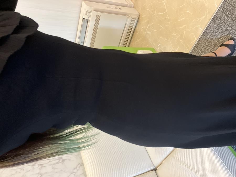 【試着モデル情報】身長157cm/バスト95~100cm/ウエスト65cm/ヒップ90cm/股下70cm。程よくフィットし、女性らしいシルエットを美しく見せます。