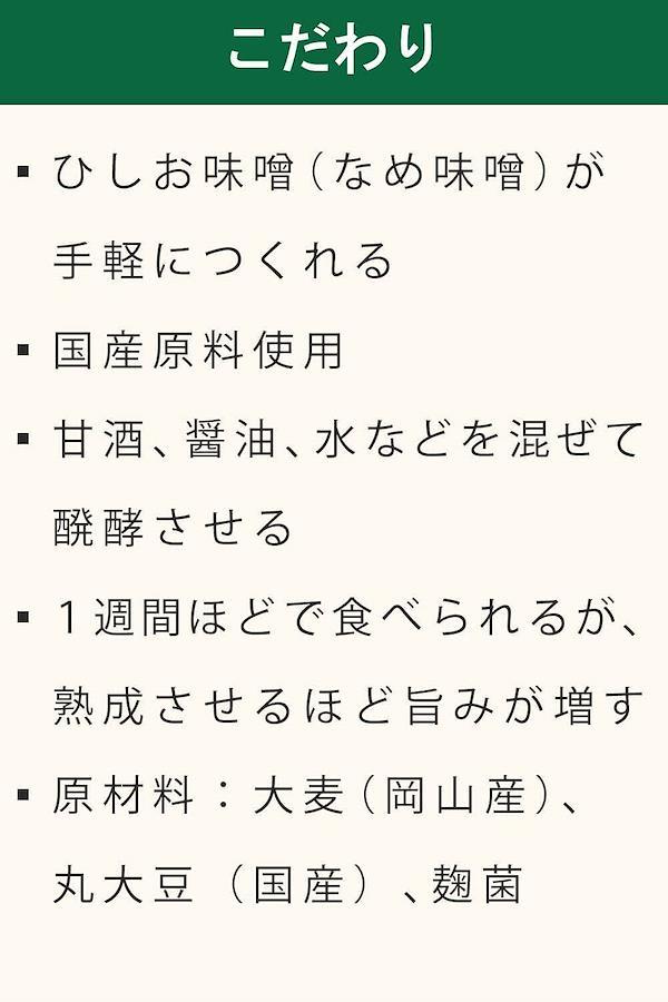 ● ● ● 商 品 詳 細 ● ● ● ● ●賞味期限 長期保存可保存方法 冷暗所で保存原材料: 裸麦(香川・岡山産)、丸大豆(岡山産)、白麹菌※パッケージ1つに対し、醤油600ccが必要です。