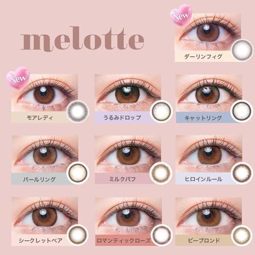 ??°Color Line Up°?? 【ダーリンフィグ】 じゅわっと包みこむ、はにかみモーヴグレージュ 【モアレディ】 接近戦も美しい、美人仕上げのダークカラー 【うるみドロップ】 自然なうるみ感にこだわった、新感覚うるみナイザーレンズ 【キャットリング】 淡いグレーカラー×ブラックの細フチで 猫ちゃんのような愛嬌たっぷりの瞳に 【ミルクパフ】 ふわっと漂う多幸感、 うっとりレディブラウン♪ 【パールリング】 パールのような、 つやっとおめかしベージュ 【ヒロインルール】 うるうるナチュラルブラウン♪ 普段使いしやすい万能レンズ 【ロマンティックローズ】 とろっとピンクブラウン! さりげないローズの味でほんのり甘い印象に 【ビーブロンド】 ふわっとあか抜けベージュ★ 色素の薄い瞳に魅せてくれて 一気にお洒落な雰囲気に 【シークレットベア】 ほろあまちゅるんブラウン◎ 細フチじゅわっと発色でつくる レディのためのぱっちりレンズ ■メロット ワンデー ■シリーズ・カラー: うるみドロップ /キャットリング /ヒロインルール /ロマンティックローズ /ビーブロンド /シークレットベア /パールリング /ミルクパフ /ダーリンフィグ /モアレディ ■高度管理医療機器承認番号:22900BZX00217000 ■含水率:38.0% ■レンズ直径(DIA):14.2mm ■着色直径 【13.3mm】うるみドロップ /キャットリング /ロマンティックローズ / ミルクパフ /パールリング 【13.5mm】ヒロインルール /ビーブロンド /シークレットベア /ダーリンフィグ /モアレディ ■ベースカーブ:8.6mm ■度数:±0.00、-0.75?-5.00(0.25step)、-5.50?-8.00(0.50step) ■装用期間:1日使い捨て ■数量・入数:1箱10枚入り ■生産国:台湾 ■製造販売元:エイショウ光学株式会社 ■販売元:株式会社T-Garden ■使用目的:単回使用(非)視力補正用色付コンタクトレンズ 【1箱分無料??】 お得な3箱セットのご購入がおすすめです!※注意:3箱とも同じカラーと度数になります。 視線で落とす #アカリンの無敵カラコン からじゅわっと甘くて色っぽいムード漂う「かけひきレンズ」が新登場? 【新色 ダーリンフィグ】こだわりの「モーヴカラー」がじゅわっと 包みこんだ発色に。優しげな「グレージュカラー」のふんわり細フチがポイント。はにかんだような、やわらかくて透明感のある瞳になれちゃう! 【新色 モアレディ】ダークブラウン × うるふわフチ でくりっと色っぽい雰囲気に。パキっとしすぎない、抜け感のあるふんわりデザインとつややかなダークブラウンが美人な瞳を演出します♪ 【超薄型レンズ採用】メロットは0.06mmの超薄型レンズを採用!厚みを抑えることで、異物感を軽減。やわらかい素材なので瞳になじみやすく一日中負担のない、快適なつけ心地に。