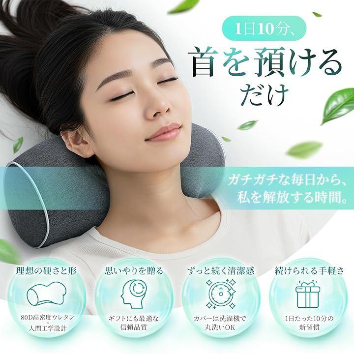 商品タイトル:「自宅で叶う、首のリセット習慣」~首にやさしく、心地よく寄り添うネックピロー 高密度ウレタンでしっかりサポート 80Dの高密度低反発ウレタンフォームを採用し、頭の重みをしっかり受け止めながら沈み込みすぎず、頸椎の自然なカーブを理想的にキープします。